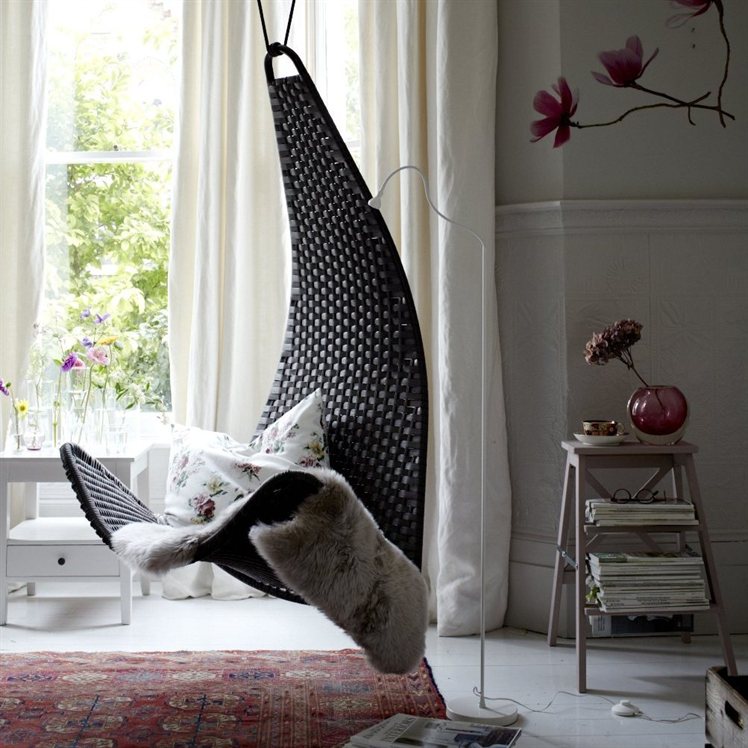 Da Live, il mensile di idee e soluzioni di Ikea, un modo per utilzzare il dondolo SVINGA all’interno di una stanza: con un cuscino e una lampada da lettura è perfetto per rilassarsi leggendo un libro. E se c’è bel tempo si può smontare e portare all’aperto, magari aggiungendo anche la versione per bambini.