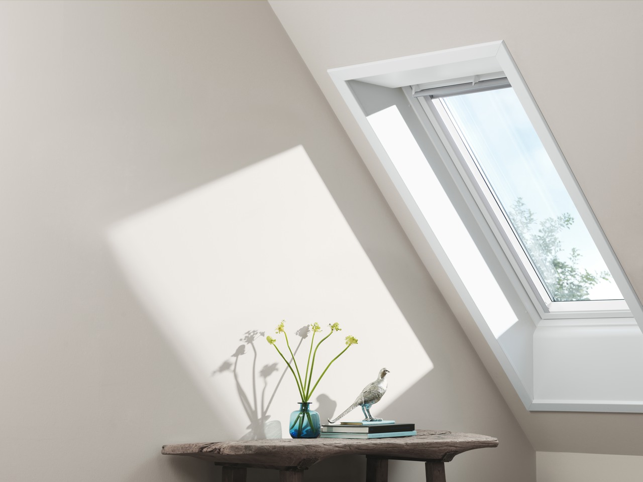 Se volete dare solo un tocco di blu, la trasparenza del vaso acquamarina è perfetta per una piccola console illuminata dalla finestra per tetti.