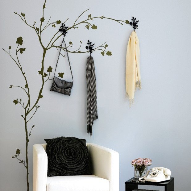 Oltre a essere un adesivo da parete molto decorativo, questo albero stilizzato ha in più due ganci che possono essere applicati in qualsiasi posizione per trasformarlo in un attaccapanni con dimensioni praticamente nulle.