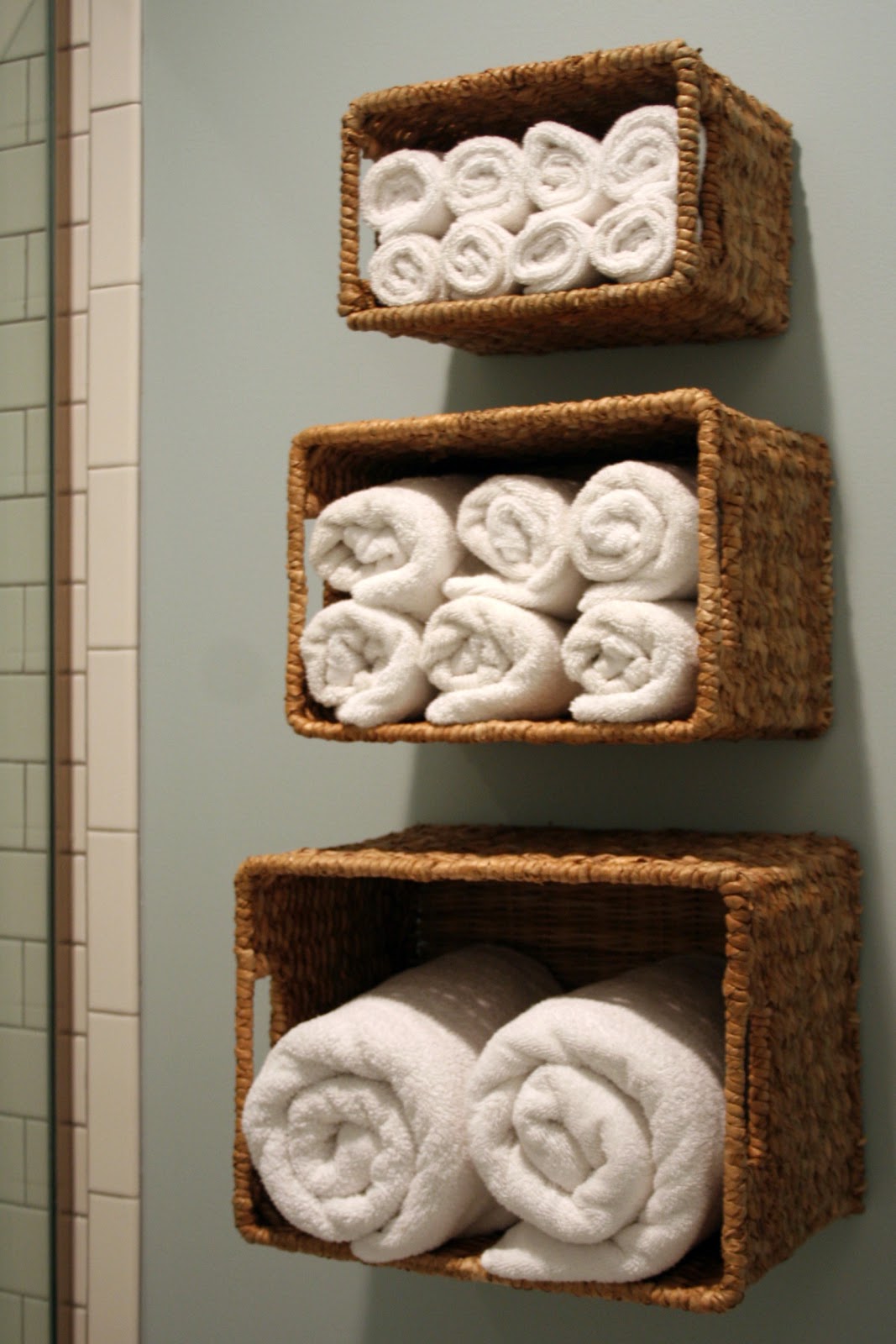 Possono essere dei piccoli cubi a giorno oppure delle ceste appese dalla parte del fondo, che non hanno una grande profondità, ma che possono contenere asciugamani o oggetti per la toilette.
