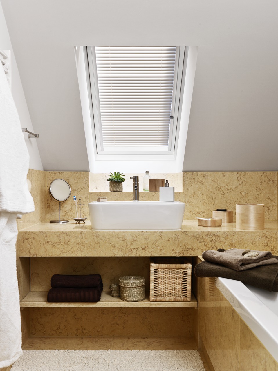 Si può utilizzare lo spazio per inserire una piccola scrivania, un’isola per la cucina o il lavandino del bagno così da usarli senza problemi con l’altezza del tetto.