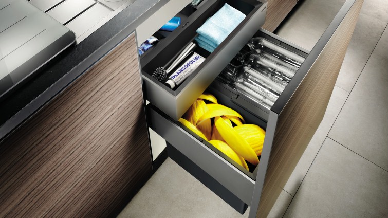 I bidoni per il secco di solito vengono messi sotto al lavello. A parte alcune eccezioni i rifiuti non hanno odore e possono restare chiusi nel pensile per qualche giorno. I sistemi più comodi sono integrati nei cassettoni, come il sistema di Blanco, così da riuscire a contenere più di un tipo di rifiuto, e possono essere estratti facilmente.