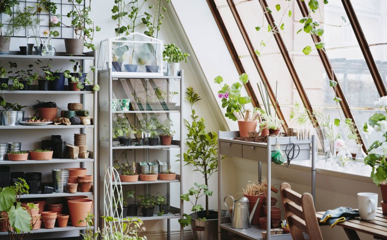 La serra Socker di Ikea ha la forma di una piccola casa e può essere appoggiata sul davanzale di una finestra o sopra uno scaffale, all’interno di un terrazzo mansardato, per dare riparo alle piante più delicate.