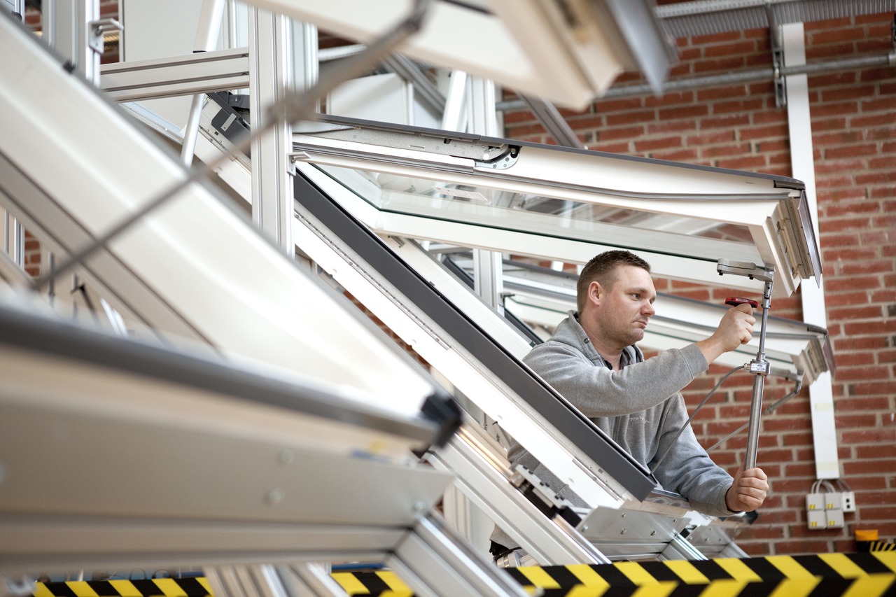 All’interno del VELUX testing centre vengono condotti dei test a campione e ogni singola finestra viene successivamente controllata prima di essere messa sul mercato.