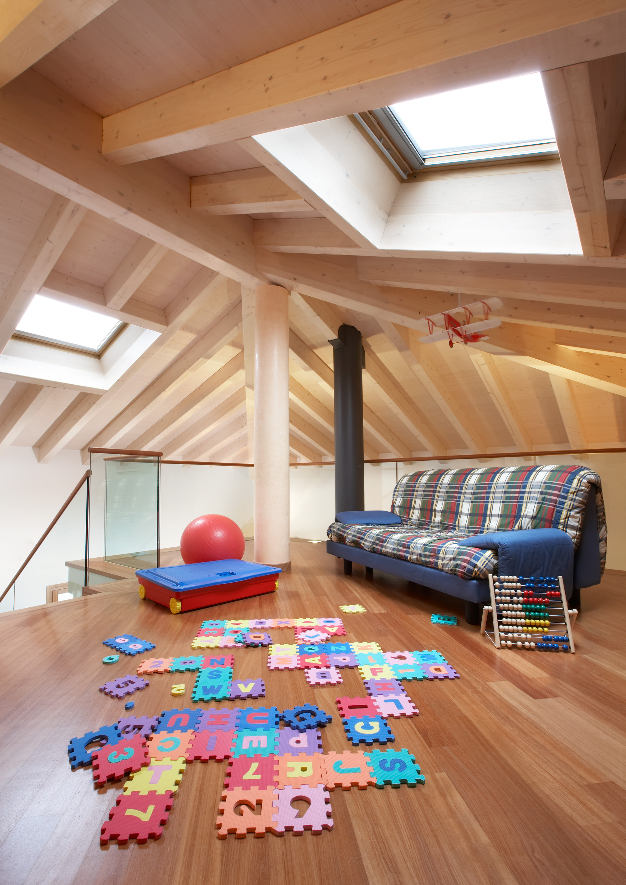 L’open space mansardato accoglie tutta la famiglia nella più svariate attività : dai giochi dei bambini, all’angolo lettura e studio. Non manca la palestra, illuminata dalla luce naturale, che permette di godere di intensi momenti di relax.