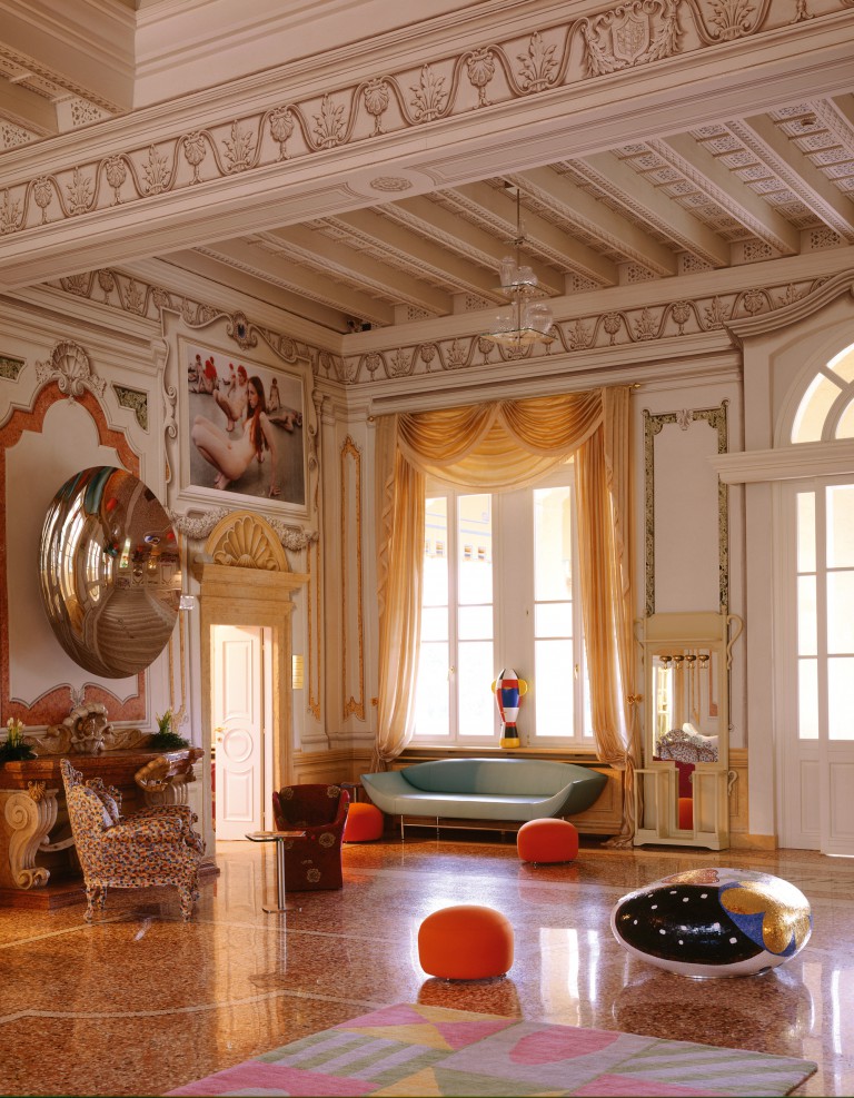 Infine la presenza non solo nelle zone comuni, ma anche nelle stanze, di una raffinata collezione di arte contemporanea, frutto della passione del proprietario e di sua figlia: opere di Anish Kapoor, Vanessa Beecroft, Giulio Paolini, Mimmo Rotella, Sol Lewitt, Beatriz Millar, David Tremlett, Jean Michel Othoniel, Sandro Chia, Arnaldo Pomodoro, Takashi Murakami, tanto per citarne alcuni. L’attento accostamento di questi disparati elementi visivi trasforma il progetto di arredamento in un’affascinante scenografia, in un preciso meccanismo scenico e museale pensato per un’eccezionale esperienza di ospitalità.