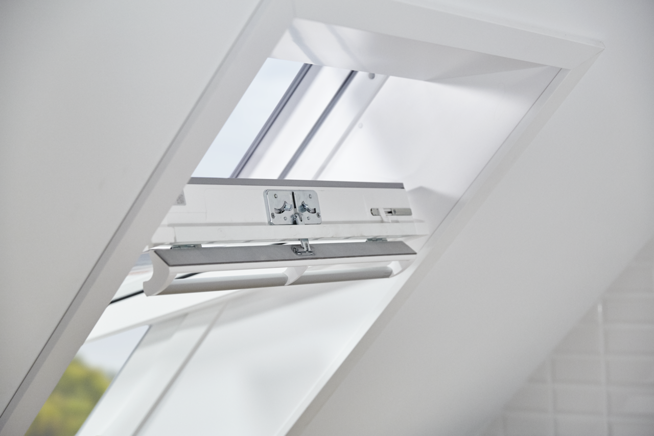 La finestra per tetti con doppia apertura vasistas/bilico si apre verso l’esterno grazie alla maniglia posizionata in basso, favorendo la vista e l’affaccio. Per questo motivo è consigliata per installazioni a portata di mano.